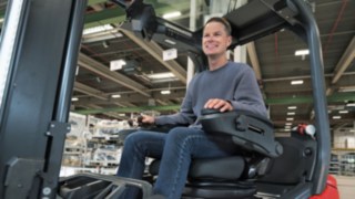 Un ulteriore elemento distintivo del nuovo Roadster è il Linde Steer Control, che sostituisce il volante tradizionale con un mini-volante o un joystick integrati nel bracciolo sinistro.