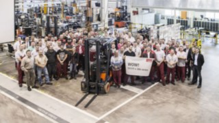 Linde festeggia la produzione del carrello elevatore elettrico numero 111.111 della serie 386 con i modelli da E12 a E20, lanciati nel 2006.